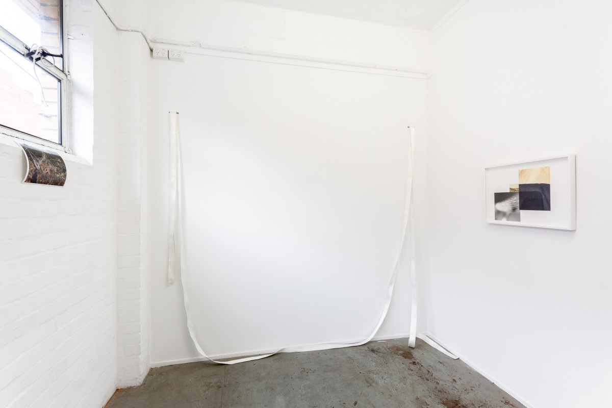 ‘Nettie crotch’ is a continuation of McKenzie’s investigation into collage – collecting and contrasting layers of imagery, both formally and through etymological linguistic association. The works themselves make attempts at the ‘awkwardity’ that she often develops in her video work, and similarly references selections of the artist’s body as an actor within a stage. In this series McKenzie seeks to clasp a moment of confluence of the works’ theatrical elements, as if they were a performance space in a moment of taut choreography. ‘Nettie crotch’ implicates the photograph as scaffold and podium, suggesting the images could be actuated as a set, or to emulate the descent of layered flats onto a stage.