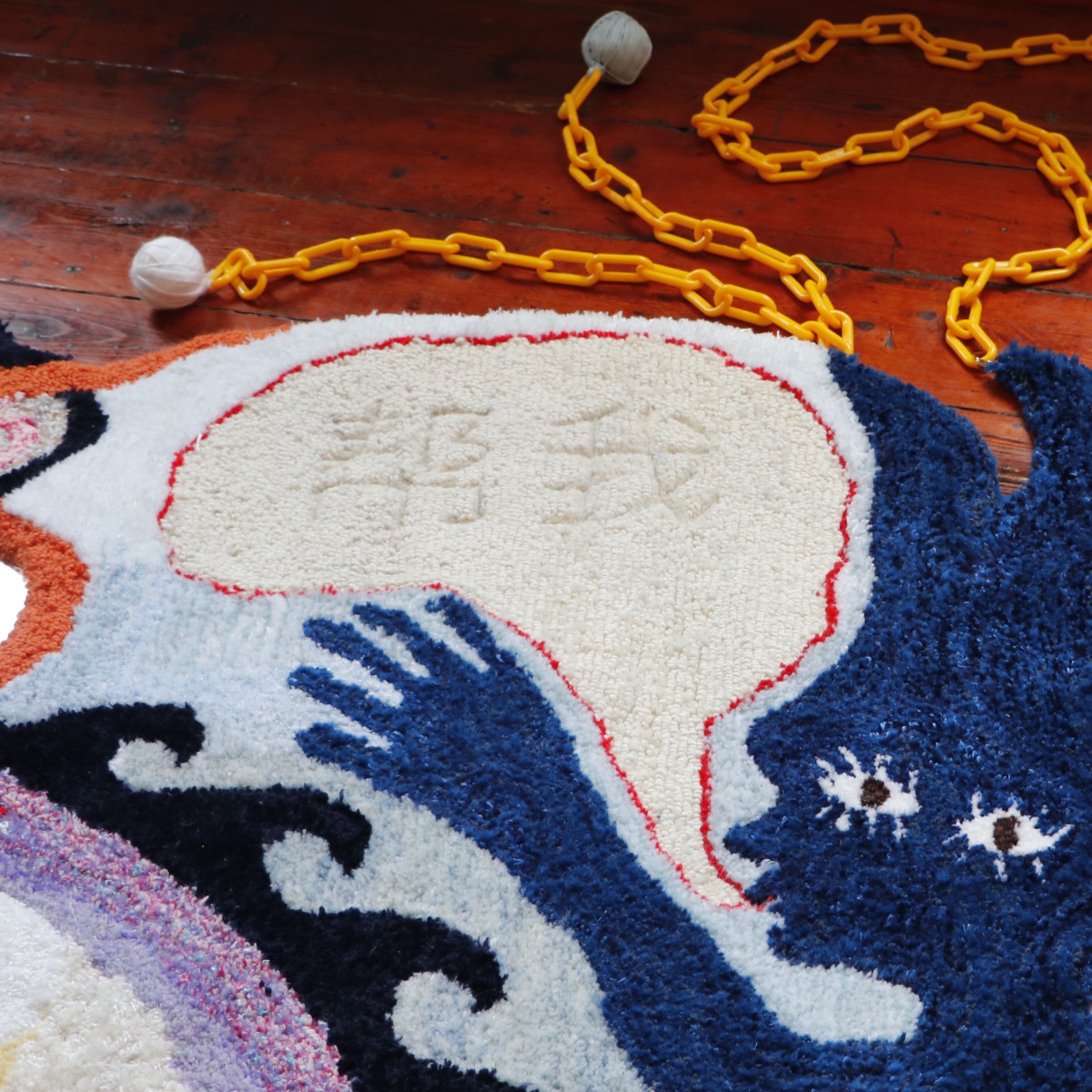 This intergenerational dialogue delves into emotional legacies and the experiences of yellow women navigating matrescence and parenthood in foreign lands, spanning 32 years (1992-2023). Central to the exhibition is the phrase “帮我” (help me) carved into the rug’s speech bubble, representing a poignant connection between cultural expression and the unspoken feelings left by time and language.