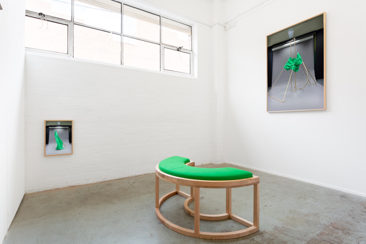 The word conversation connotes talking. Which two halves of myself are in discussion? What is it that I am trying to reconcile, work through and work around? A potential outtake. Their bodies are close, but their feet are drawn apart. They are moored to one another, by the cloth and by their footing. The curve of the two sculptures will be echoed by the seat. ‘One always locates one’s own image in an image of the other and, one always locates the other in one’s own image.’2 A place of theatricality. The performativity of self-realization. The sculptures function as stand-ins; as props. There is a roundness here. Are you breathing with me? Are you breathing too?